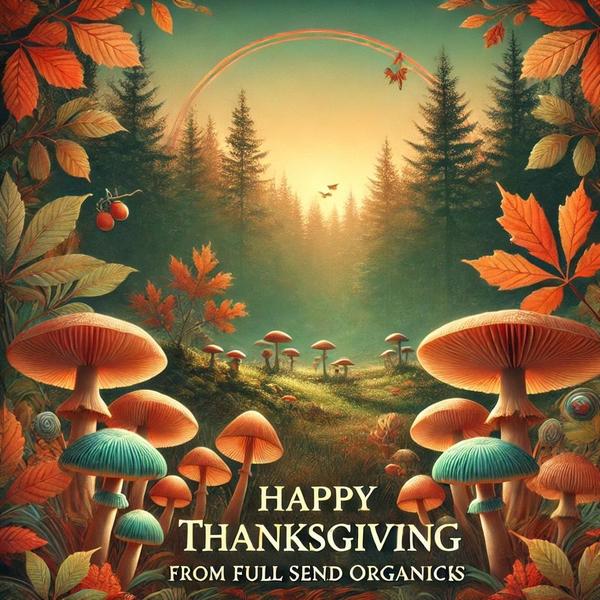 This Thanksgiving, we at Full Send Organicks want to express our heartfelt gratitude for four incredible years of support, growth, and connection. We are so thankful for our amazing community and the opportunity to share our passion for mycology, mental health, and sustainable living with you. Your trust and encouragement inspire us every day to